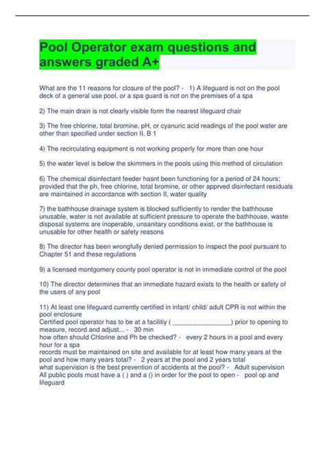 Free PDF POOL OPERATOR EXAM ANSWERS Epub Library Genesis
